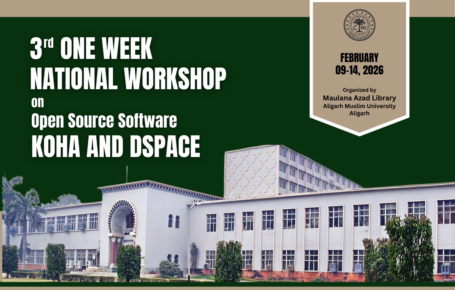 Maulana Azad Library is pleased to announce the 3rd One Week National Workshop on Koha (Advanced) and DSpace, scheduled from 09–14 February 2026. This intensive six-day training will equip participants with practical expertise in implementing Koha for library automation and DSpace for digital repository development.